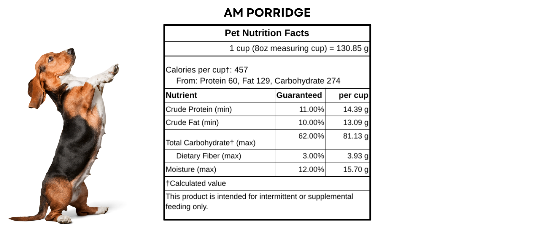 We feed both our Chocolate Lab and our Westie this porridge for breakfast. They love it and we love that it's all natural and good for them! Their coats are healthier, they lost their extra weight and their overall health is just so much better. I can't recommend this and the PM enough!