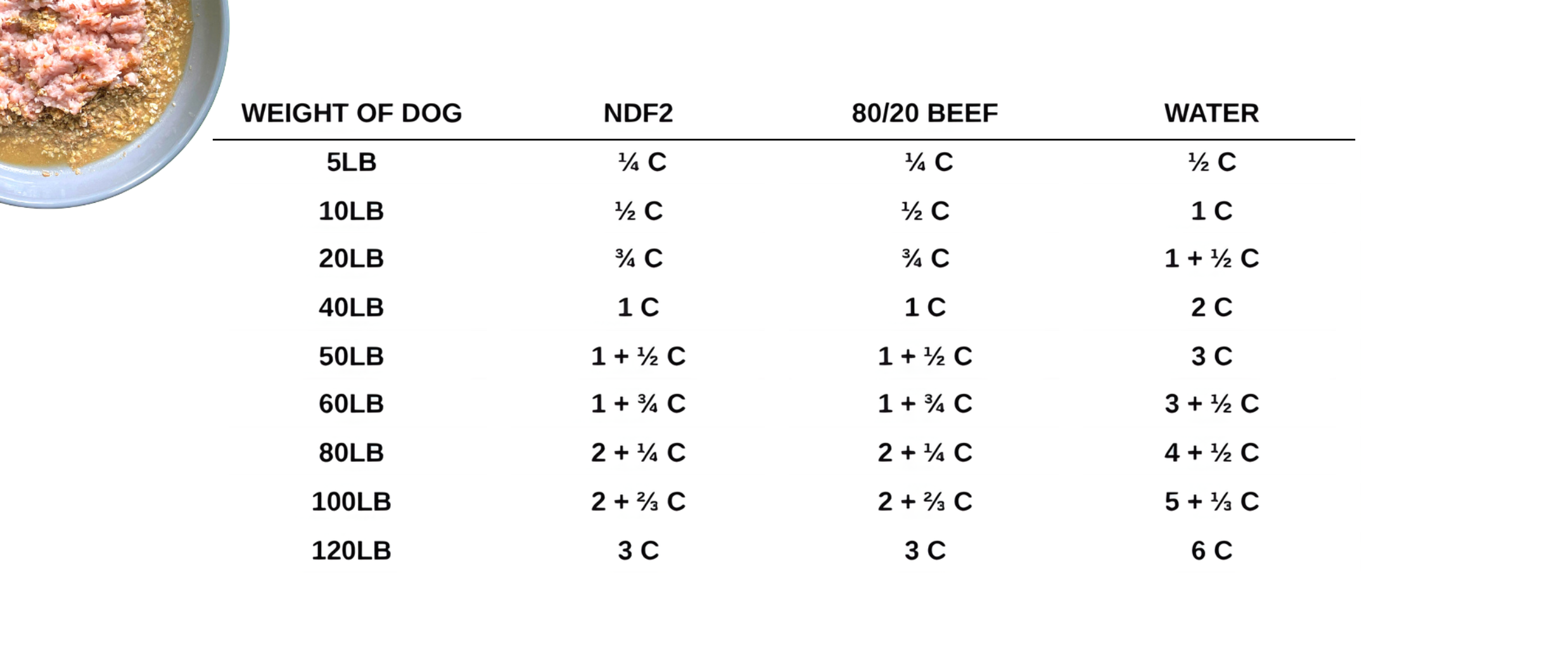 1. Mix NDF2 Chicken with fresh protein (we suggest 80/20 ground beef raw or lightly cooked) and water as directed.